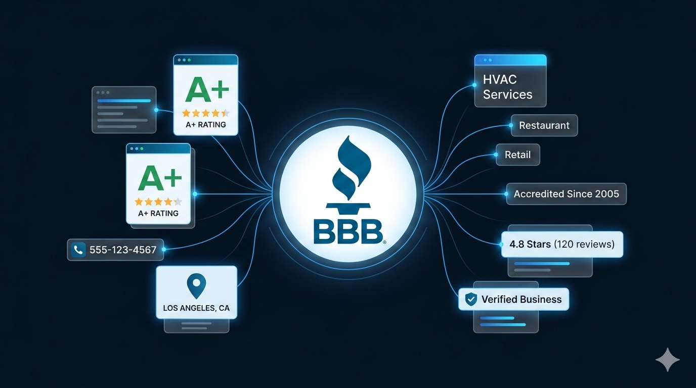 That makes BBB a high-value data source for anyone doing local lead generation or B2B outreach. Unlike generic directories, BBB profiles include trust signals like accreditation, letter-grade ratings, and complaint records — the kind of data that lets you qualify leads before you reach out.