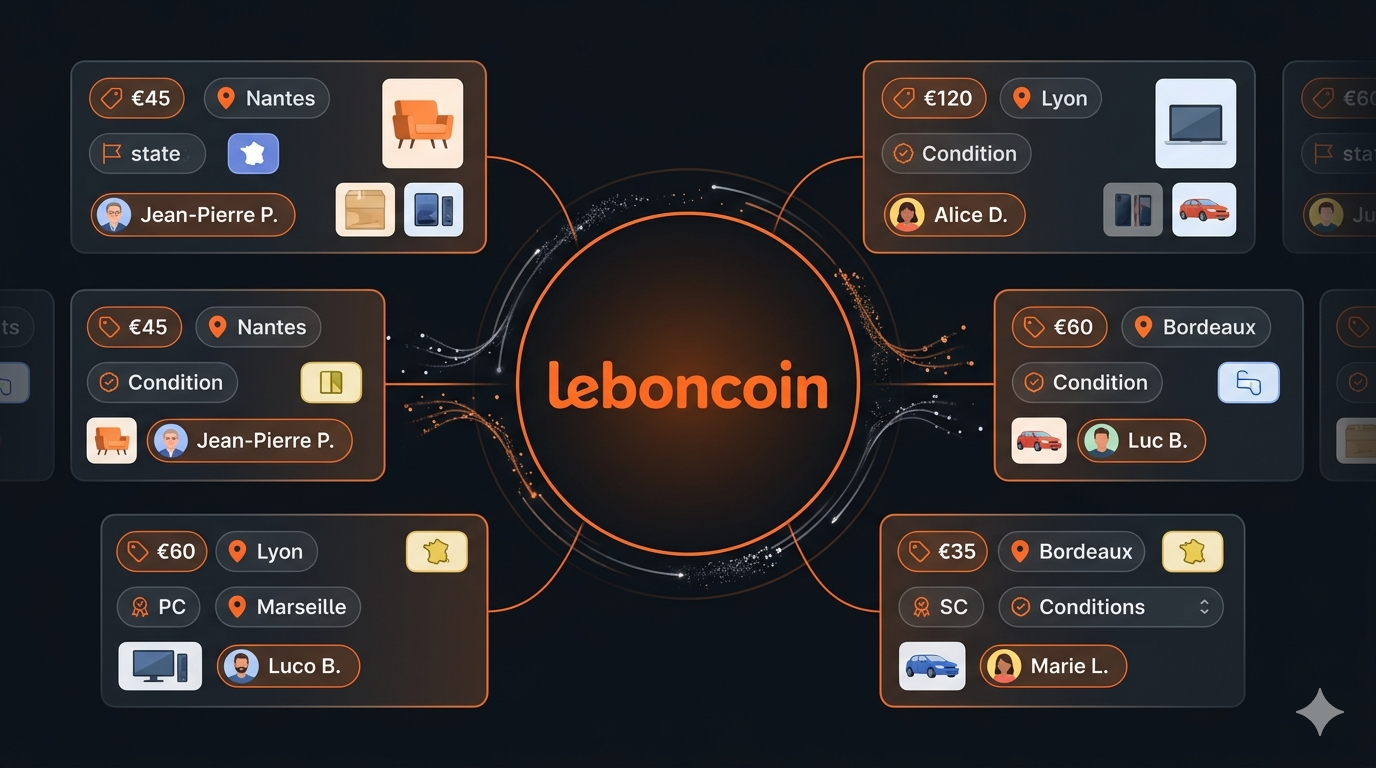Leboncoin is France's largest classifieds marketplace, with tens of millions of listings spanning vehicles, real estate, electronics, fashion, home goods, and services. It is the dominant platform for second-hand commerce in France, with a reach and category depth that makes it a critical data source for anyone operating in or researching the French market.